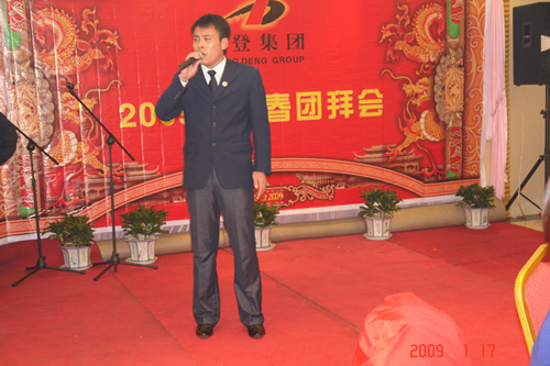 一段开场词,拉开了中登集团2009年新春团拜会的序幕。1月16日,在欢声笑语声中,金太阳酒楼,在宽广明亮、花园锦簇的宴会大厅里,来自中登集团各部门及各下属单位的员工、亲属计260多人,共同参加了盛大的新春团拜会。