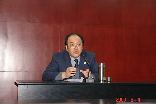 下午,中登集团副总裁中登房地产公司总经理张河主讲了题为《认清形势,振兴房地产》的主题报告。张总首先宣读了:《全国工商联房地产商会关于认清形势、振兴房地产业的倡议函》和建议稿。接着,张总分析了国内外的金融态势和房地产的现状和发展概况。并从国内外的经济危机对地产业的影响扩展开来,认为房地产的低迷主要是国家对经济适用房的实施细则未出台,多数购房者持盲目观望的心态。并着重分析了国家对房地产救市的一系列政策,最后,讲座以总理温家宝总理在达沃斯论坛上的一段话为结束语:“严寒将会过去,春天很快就会到来,让我们提振奋信心!加强合作,启动全球经济的新一轮增长。