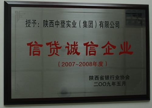 本网讯 ,中登集团在陕西省第五届(2007-2008年度)信贷诚信企业评选活动中,被评为“信贷诚信企业”。