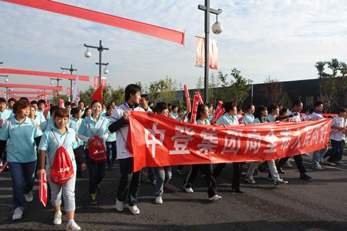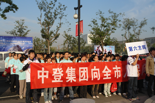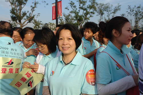 本网讯 昨天上午,2009中登集团西安城墙国际马拉松赛系列活动暨特步万人健康跑在曲江池遗址公园隆重举行。中登集团参加了万人健康跑活动。