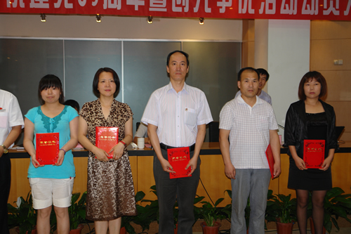 为隆重纪念建党89周年,进一步增强党组织的凝聚力和战斗力,激发广大党员在创先争优活动中发挥先锋模范作用,在“七一”前夕,市委组织部决定在全市基层党组织和党员领导干部中开展党员干部慰问活动。中登集团城市花园项目党支部荣获”先进基层党组织奖”,支部书记瞿忠东上台领奖。化学公司总经理许东获得“优秀共产党员奖”、集团副总裁黄德云获得“优秀党务工作者奖”。中登集团也有一批新党员在庄严的党旗下参加宣誓仪式。
