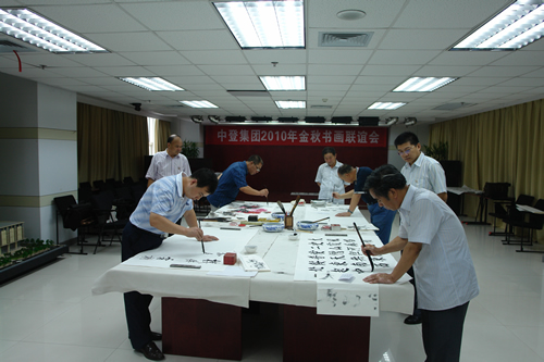 恰逢金秋送爽喜迎双节之际,在联谊会上,各位书画名流以饱蘸深情笔墨,尽情书写了呕歌了中登集团创业十七年的庆典的诗歌,以及尽心敬业求实发展的企业精神。表达了书画同仁对中登人艰苦创业、仁爱处世的敬业精神和社会责任认同。希望中登集团永远以海纳百川的胸怀,重振龙马精神,在今后的发展历程中能够积健为雅,大展鸿图的美好祝愿。艺术家们的功力精深的墨宝,为中登企业文化的建设书写了浓墨重彩的一笔。
