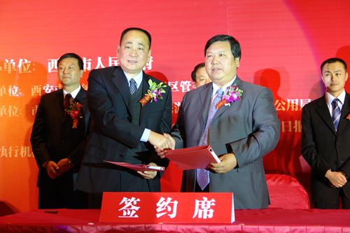 (西安市体育局局长贺长生(左);中登集团总裁宋玉庆(右))