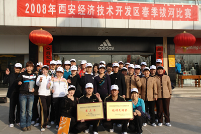 本网讯 2008年2月22日,中登集团参加“2008年西安经济技术开发区春季拔河比赛”,中登男队获得团体第三名,女队获得精神文明奖。