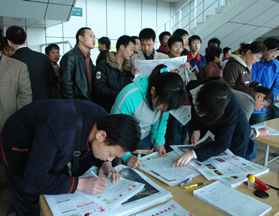 本网讯 2008年3月1日上午在西安城市运动公园体育馆二层举行“西安经济技术开发区2008春季人才招聘会” 中登集团作为一家以石油化工、房地产开发为主导产业的公司,也参加此次招聘会。