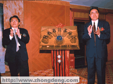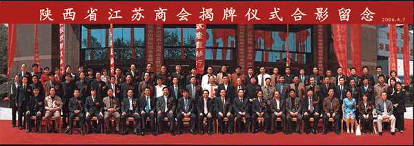 本网讯 2006年4月7日,陕西省江苏商会揭牌仪式在西安紫金山大酒店举行。陕西省人大常委会副主任潘连生、陕西省政协副主席张生朝、江苏省政协副主席孙安华、陕西省江苏商会会长宋玉庆等出席了揭牌仪式。