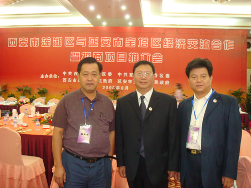 本网讯,2008年8月25日,中登集团副总裁韩新垣、总工程师邢涛,参加了为期5天的西安赴陕北招商推介会,推介会由西安市莲湖区政府组织,主要在陕北的延安市和神木县等区域进行。