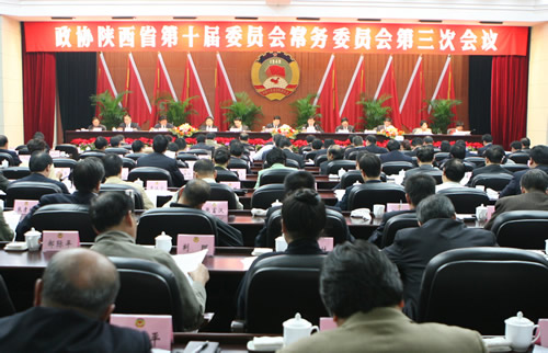 本网讯,陕西省政协第十届委员会常务委员会第三次全体会议于2008年10月9日至11日在西安举行。宋玉庆总裁作为陕西省十届政协常委参加会议。会议期间,常委会组成人员听取了吴登昌副省长关于我省民生八大工程进展情况的通报,听取了王晓安副主席关于我省民生八大工程调研情况的说明,听取了李进权副主席关于我省城乡居民最低生活保障制度建设调研情况的说明,听取了省文化厅厅长余华青同志关于陕西发展的特点及启示的专题讲座,向不再连任的驻陕十届全国政协常委代颁了纪念牌,通过了有关人事任命事项。会议着重围绕如何更好地推进民生八大工程进行了认真的协商讨论,提出了许多宝贵的意见和建议,具有重要的决策参考价值。