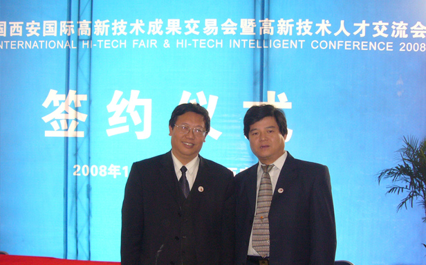 本网讯,2008年10月24日,第四届中国西安国际高新技术成果交易会在西安市曲江国际会展中心隆重举办,中登集团副总裁韩新垣和总工程师邢涛代表江苏商会参加甘肃省天水市举办招商推介会。