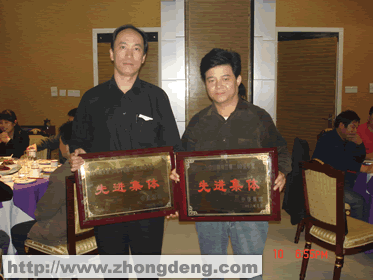 本报讯 2006年10月10日,中登集团2005年度先进集体和先进个人颁奖晚会,在西安经济技术开发区隆重举行,宋玉庆总裁及集团各机构负责人出席颁奖晚会,颁奖晚会由集团高总主持,韩总代表总裁发表了热情洋溢的讲话,张总代表集团向获奖单位和个人颁发了奖牌及奖金。