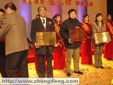 本网讯,2006年1月5日在曲江宾馆隆重举行了“地产西安——2005年度西安楼市龙虎榜颁奖盛典”,荣获“2005西安楼市龙虎榜最佳性价比”楼盘。 本次活动由三秦都市报、西安房地产信息网、西安市房屋管理局举办,主题是“一个诚信、真实、公正的排行榜”。西安房地产信息网直播小组将对本次颁奖盛典全程直播。