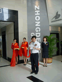 2007年5月16日早上九点,在中登大厦A座大厅举行“房产销售中心乔迁仪式”会议由王庆主持,房产销售中心刘磊致开幕词,副总裁张河先生与总会计师党娟女士共同剪彩。