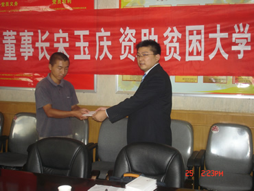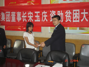 在会上中登集团总支部书记、副总裁韩新垣代表宋玉庆总裁对高分考上大学的同学表示祝贺,并以他自己的“知识改变命运”,希望受助同学不忘养育他们的故乡和父母,不忘培育他们成材的学校和老师,不忘在最困难的时候支持资助他们的社会各界人士,可利用假期时间到中登集团参观实习,并希望毕业到中登集团工作,鼓励同学们要发扬“自信、自立、自强”的精神,努力学习,回报社会。