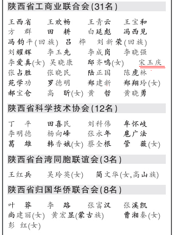 中国人民政治协商会议陕西省第十届委员会委员名单