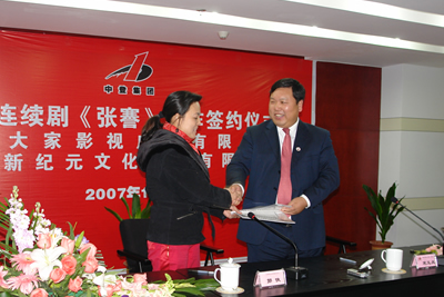 签约仪式上,中登集团宋玉庆总裁首先发表讲话。宋总在讲话中介绍了自己对张謇的感情,他还特别讲述了张謇对于自己经商思想的指导意义。宋总讲话后,新纪元公司郭侠董事长发表讲话,介绍了双方合作及先期筹备的相关情况。新纪元公司严伟民总经理最后发言,着重对张謇的生平及思想的重要性进行了阐述。签约仪式由大家影视有限公司总经理侯长荣主持。