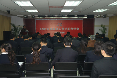 元月11日上午9点半,中登集团举行管理人员年终述职考评会,公司部门以上中高层管理人员参加述职,集团各单位员工代表24人参加会议并对管理人员进行打分考评。